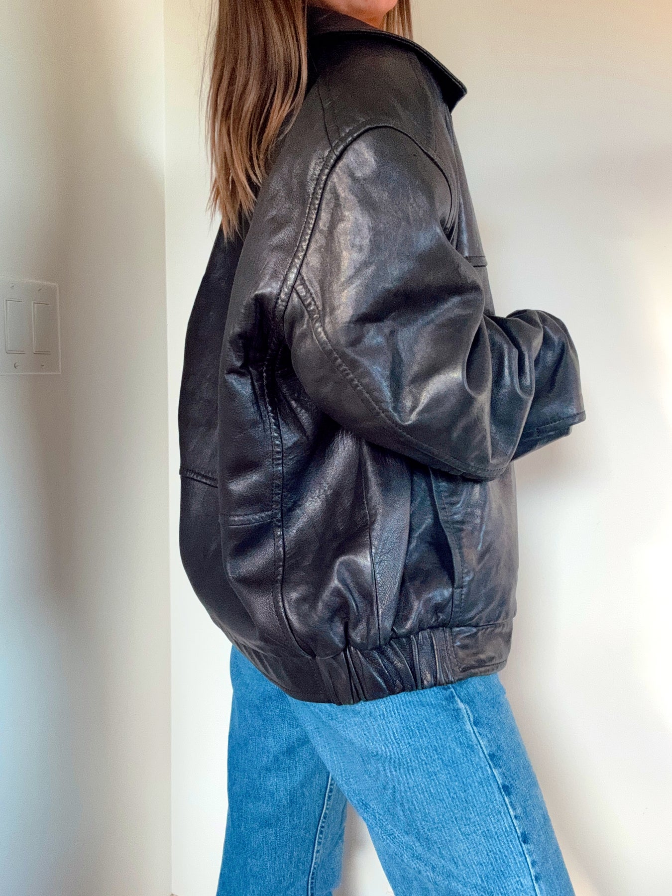 Vintage Manhattan black leather jacket