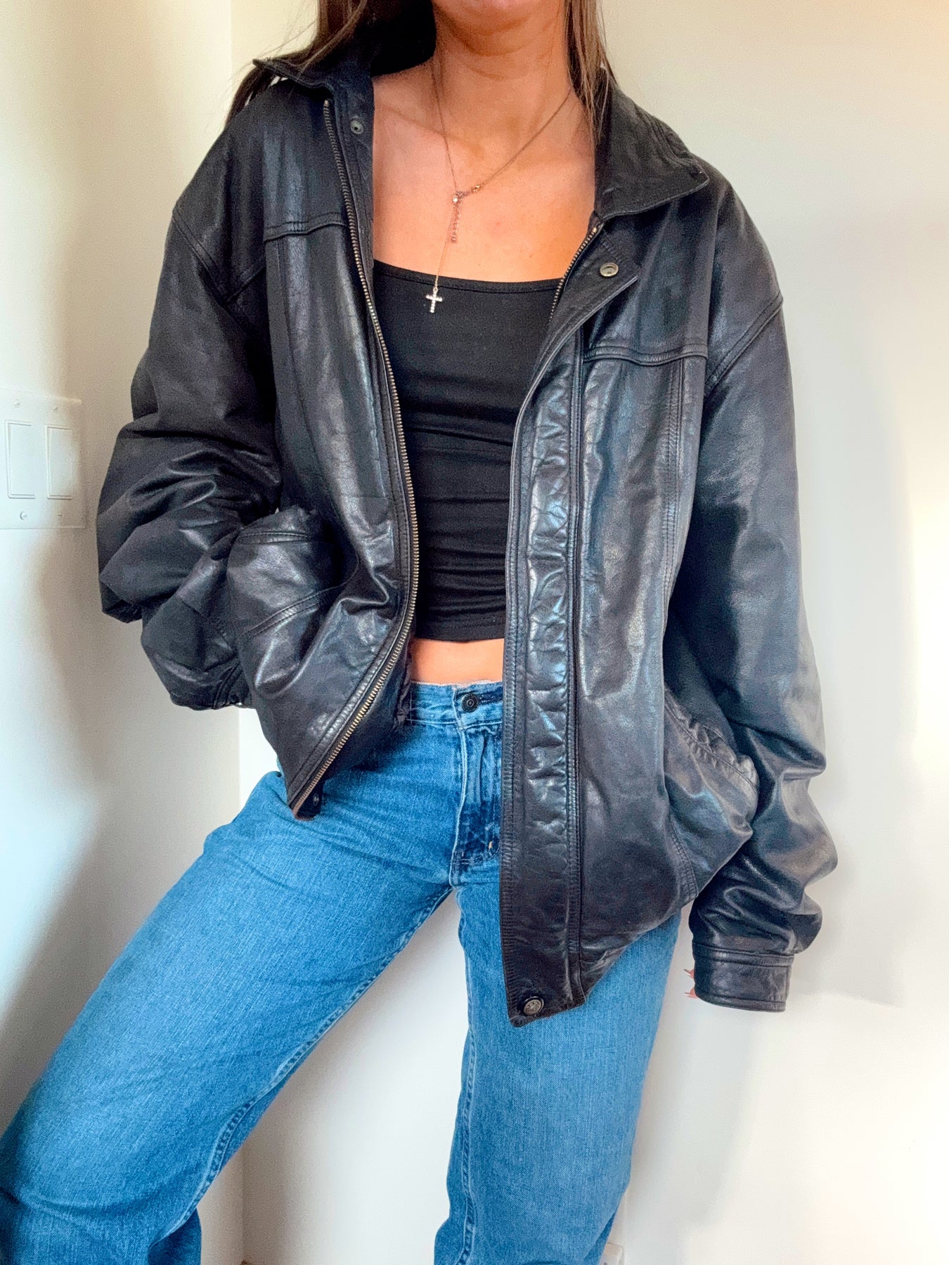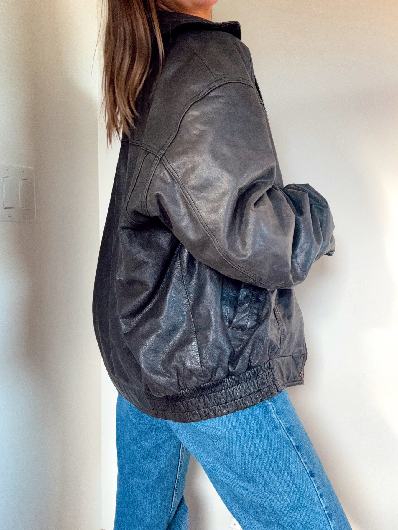 Vintage Midtown bomber black leather jacket